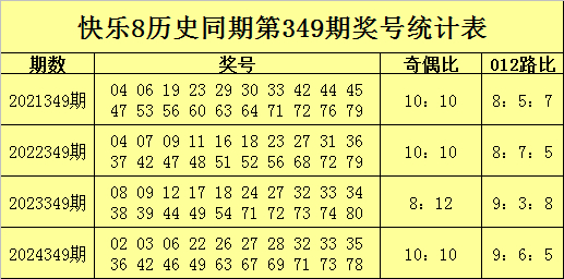 金鹏快乐8第2025349期奖号参考: